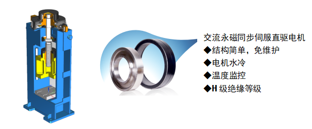 ·零传动 采用先进的交流永磁同步伺服直驱电机和矢量控制技术,直接将扭矩传递给螺杆,没有中间传动部件、易损件和能量损失。